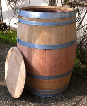 Aus Altholzfässern entstehen Regentonnen & Blumenkübel