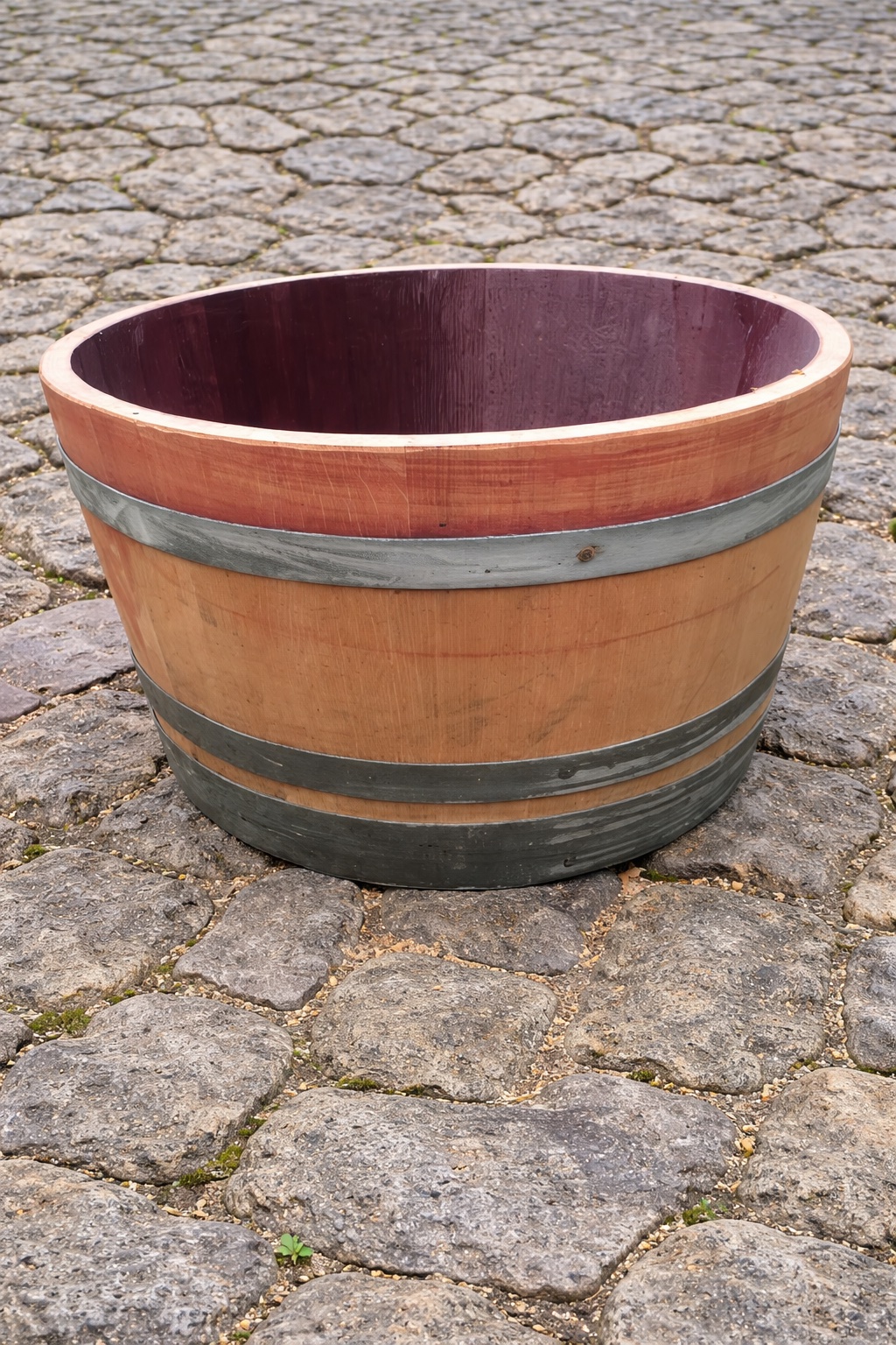 Pflanzkübel aus Weinfass – 300 Liter Eiche | rustikaler Garten-Blumenkübel